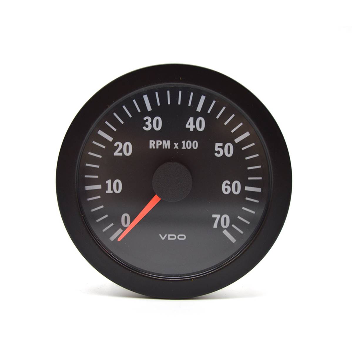 RPM indicator 7000 revolutions / min. The information comes from the classic ignition system and the alternator. Diam: 80 mm – Depth: 68 mm