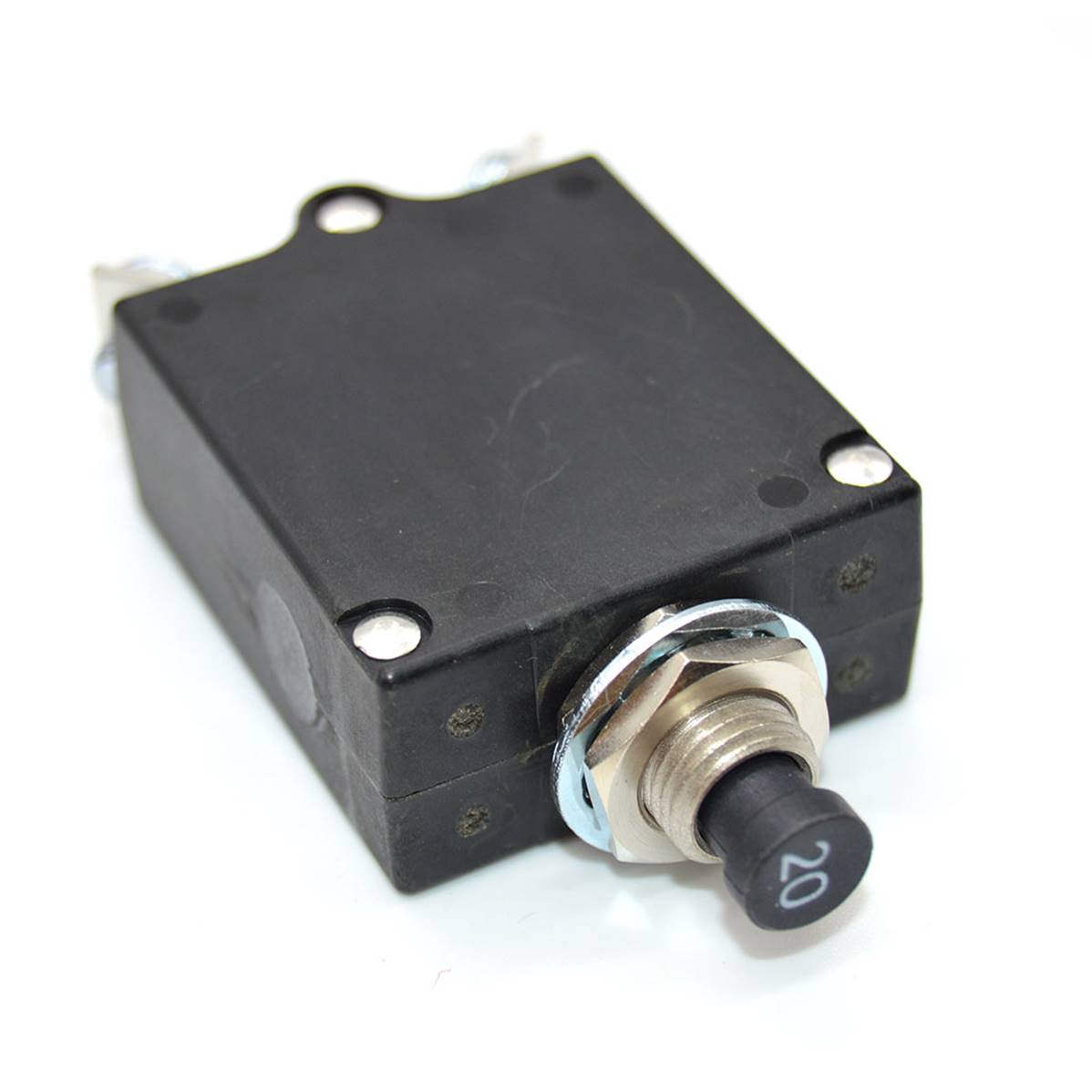 Fuse cut-off switch 12V 20A unipolar, compact with free positive priming. Priming can be done with a bimetallic element, widely insensitive to short time start-up spikes. Fixation by thread nose or ratchet. L x l x h= 52 mm x 17 mm x 35 mm