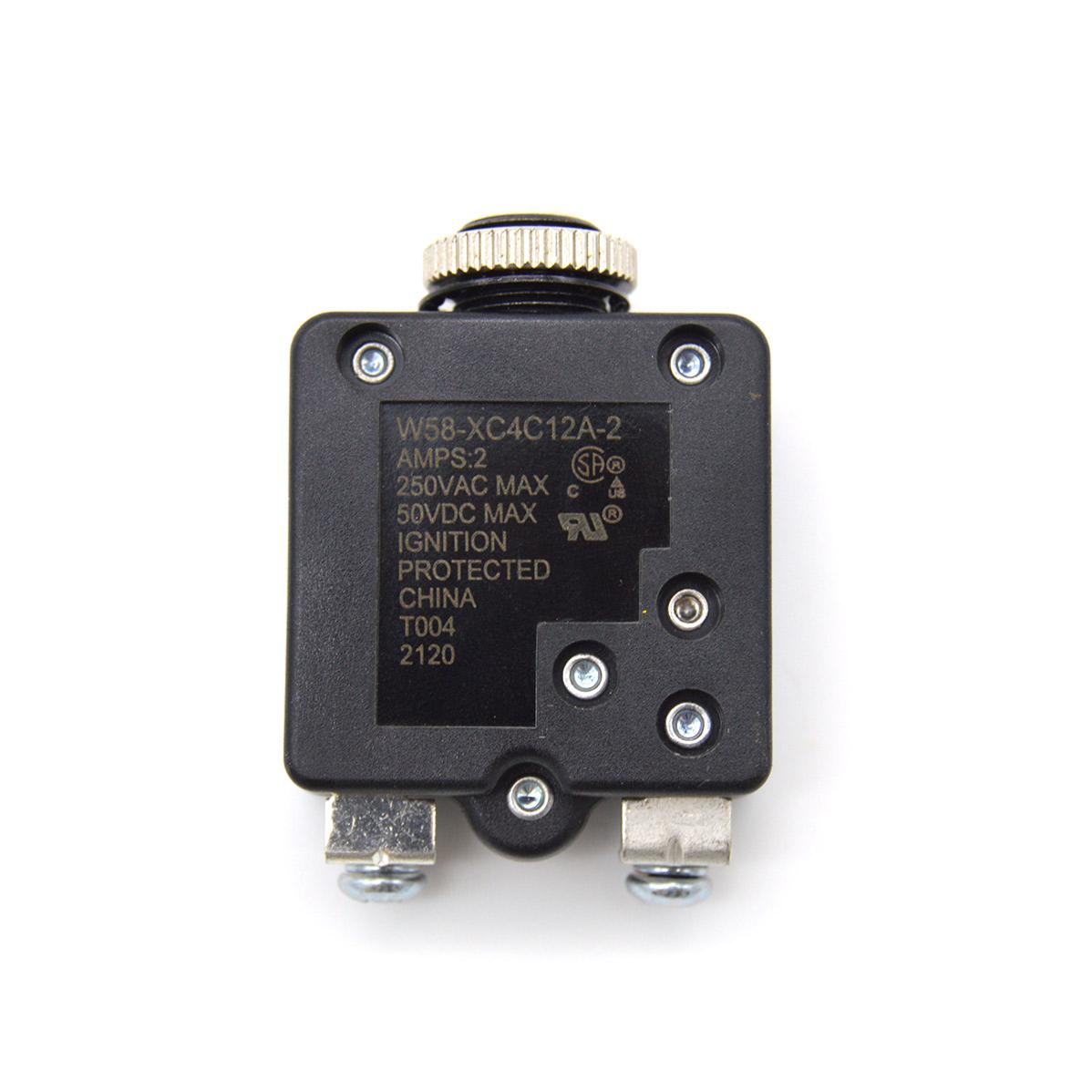 Unipolar cut-off switch 12V 2A, compact with positive free priming. The priming is performed by a bi-metallic element, insensitive to short-term start-up tip. Attachment can be fixed with thread nose or ratchet. Fixed on the dashboard with a union-nut L x l x h = 45 mm x 16 mm x 36 mm
