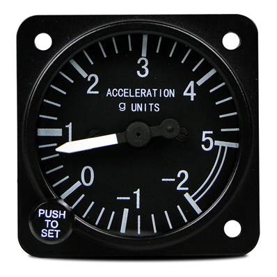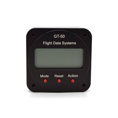 GT50 accelerometer combining G-load indication, clock display, and battery voltage monitoring. Clear digital screen with simple controls for easy in-flight awareness. Compact format for straightforward panel installation.