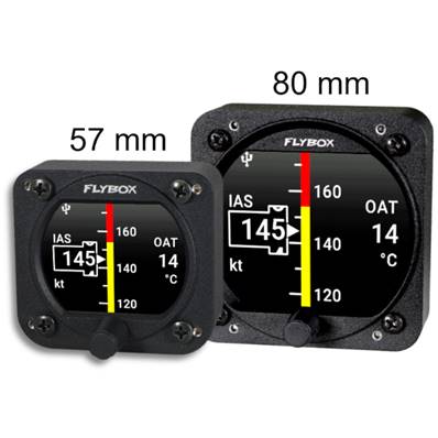 Anemometer graduated from 30 to 240 km/h. Diam: 80 mm – Depth: 50 mm with connections. Sold without pitot – Weight: 444 gr – Delivered with output 1/8’ diam 6 mm