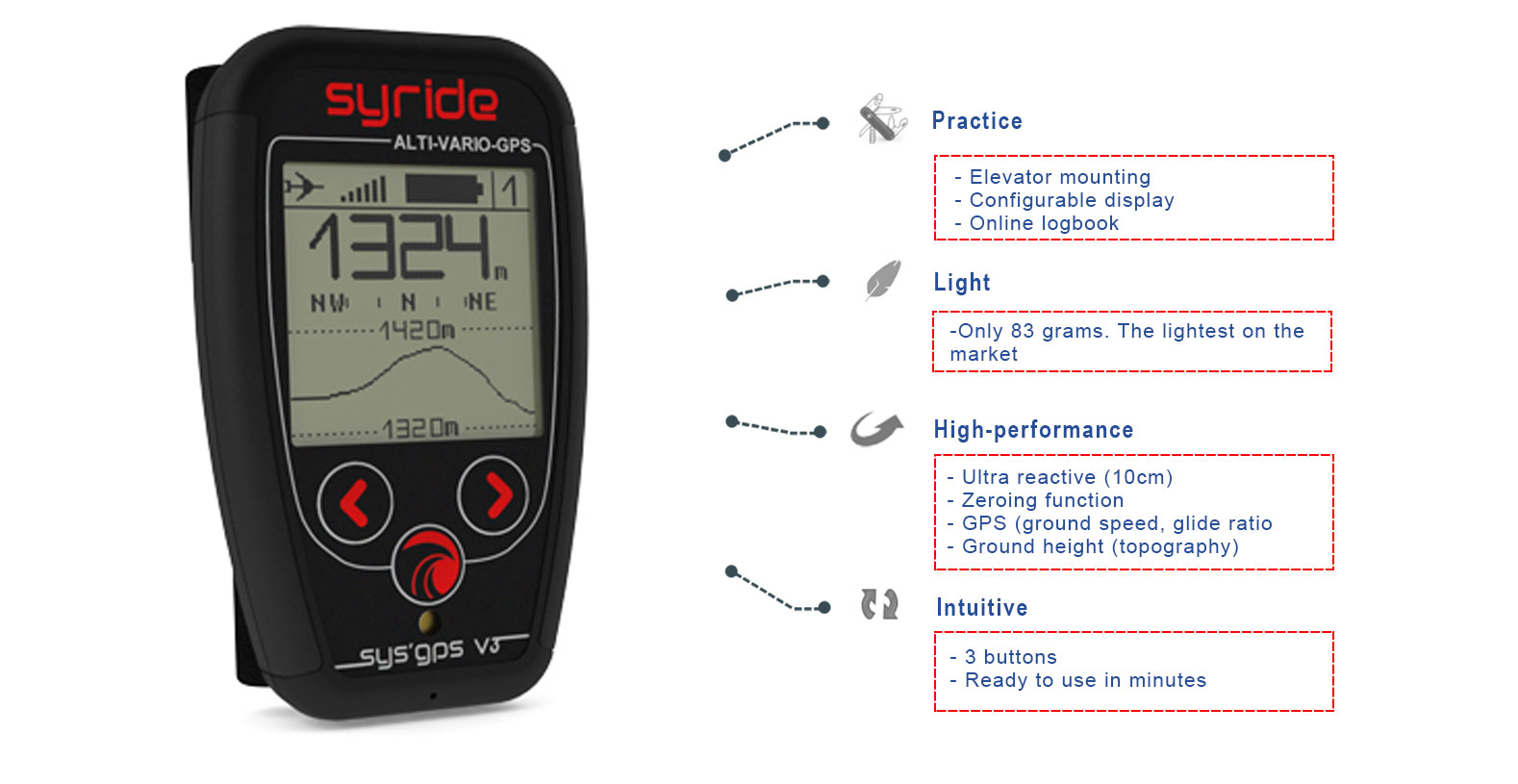 Alti-vario GPS with G-meter SYS'GPS V3 - SYRIDE