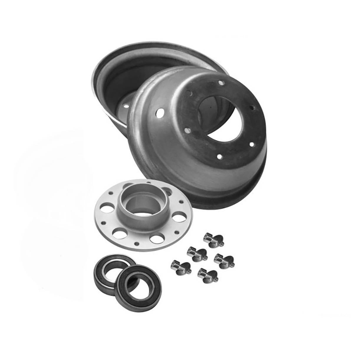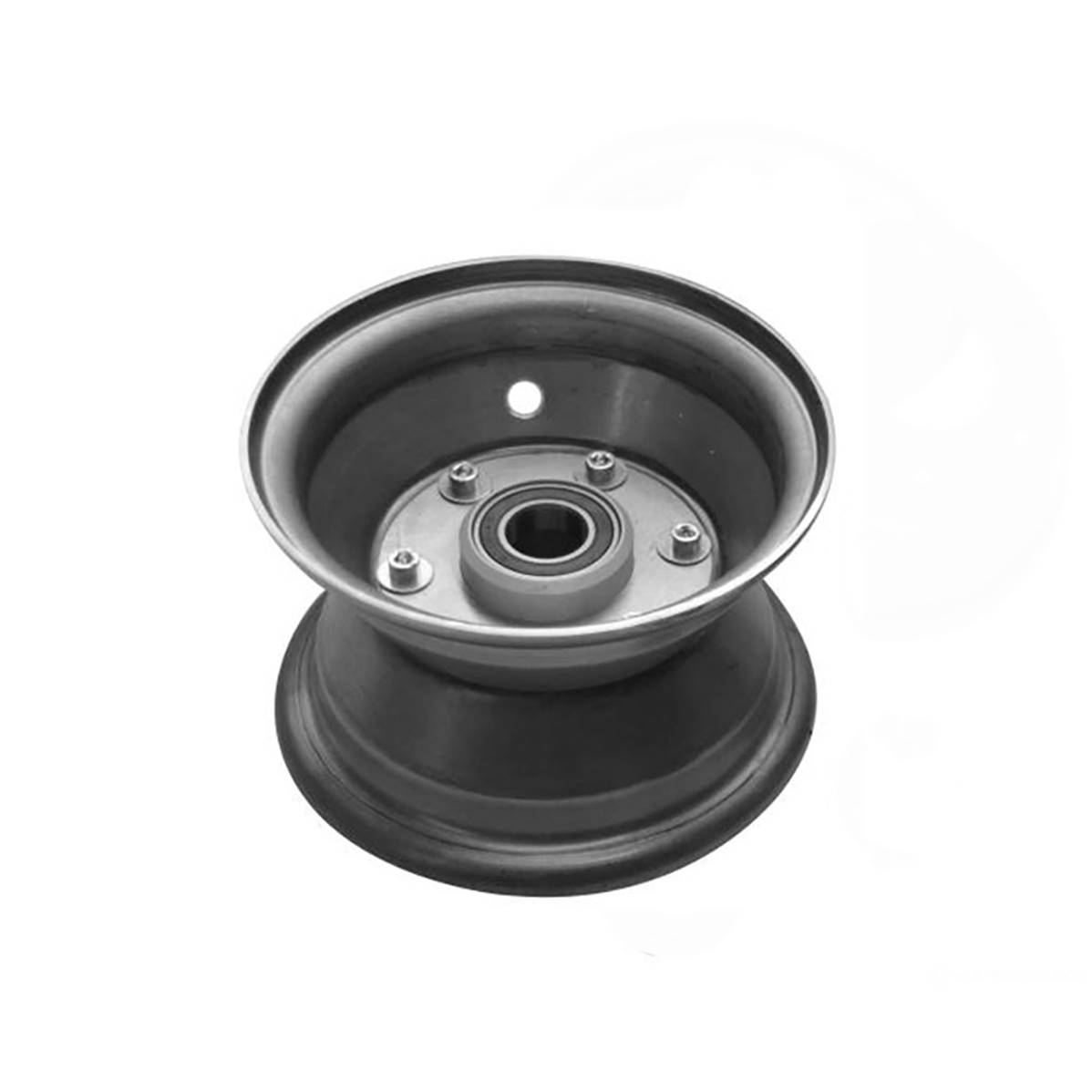 Aluminum wheel rim 6’ without a break but with a 50 mm hub, made by alloying aluminum. Rolling fit for a 20 mm diam axe. Weight : 0.950 kg