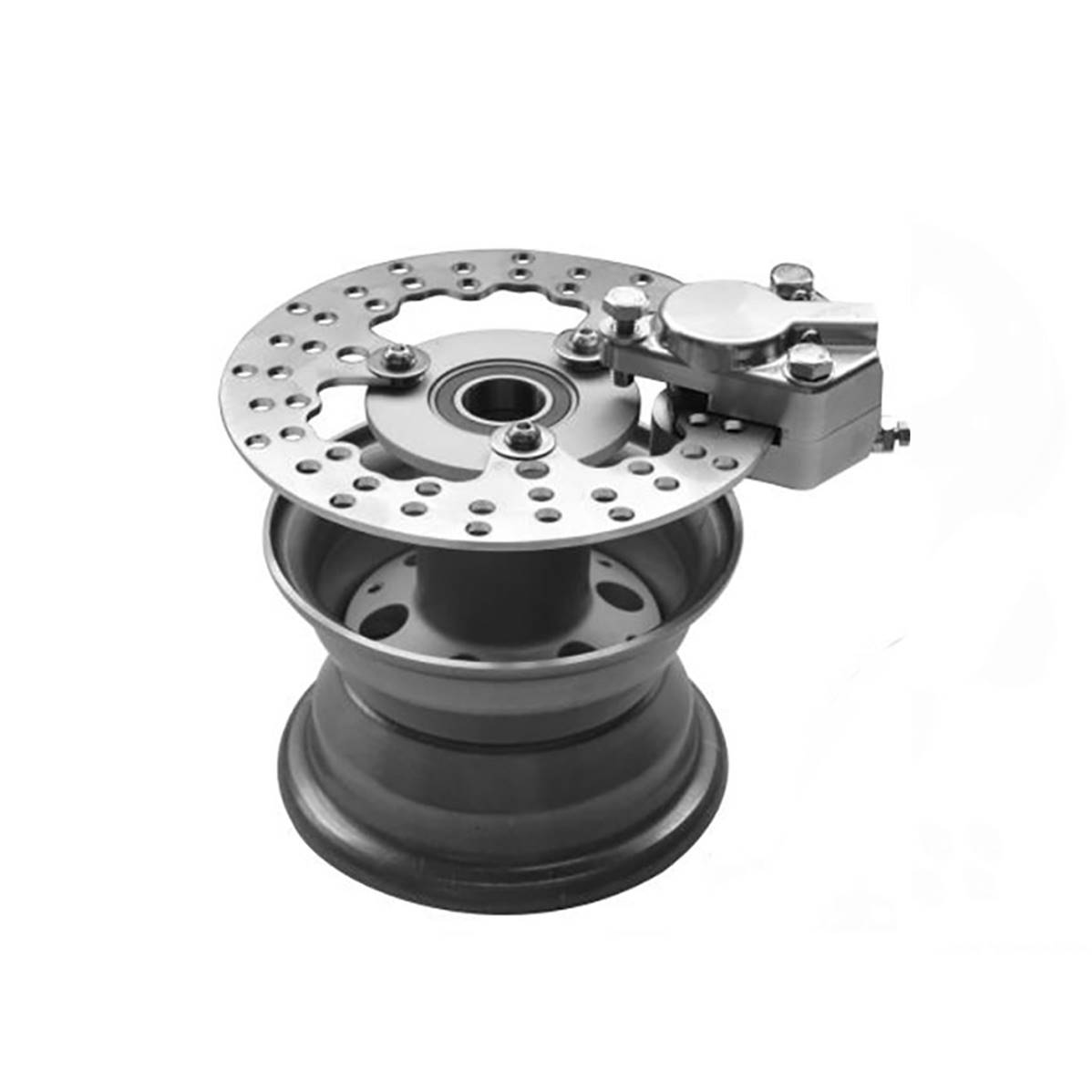 Aluminum wheel rim 6’ with disc brake (diam 175 mm and hub 108 mm), made by alloying aluminum. Rolling fit for a 20 mm axe. This wheel rim is delivered with a hydraulic caliper. Weight: 2.020 kg
