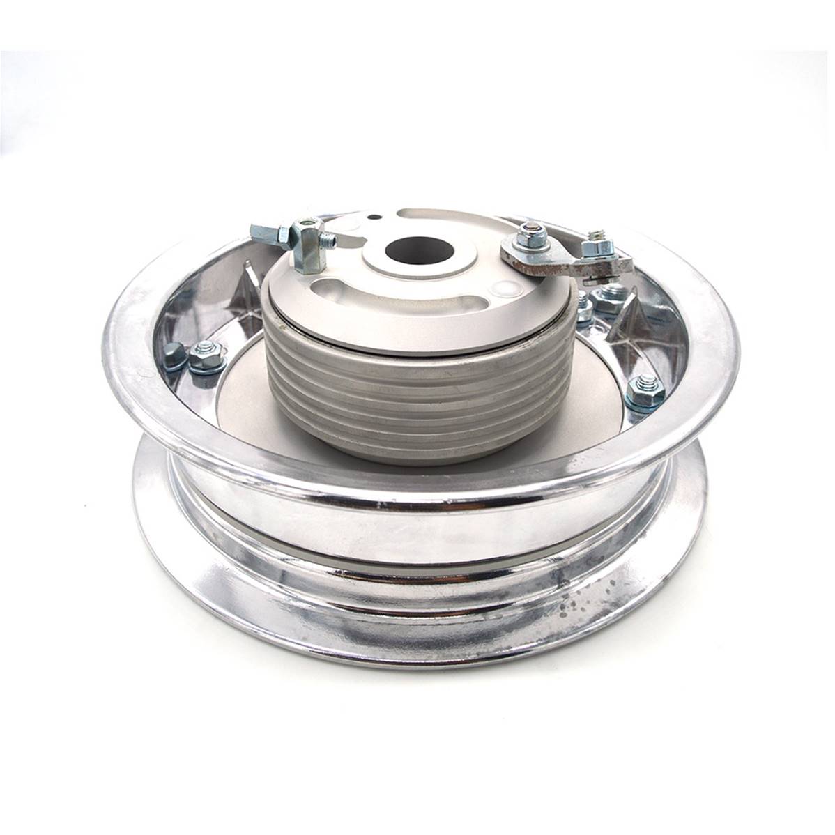 Demountable aluminum wheel rim 8’ with DX drum brake (lever on the right), with a 105 mm diameter and a 70 mm hub, made by alloying aluminum. Rolling fit for a 20 mm axis.