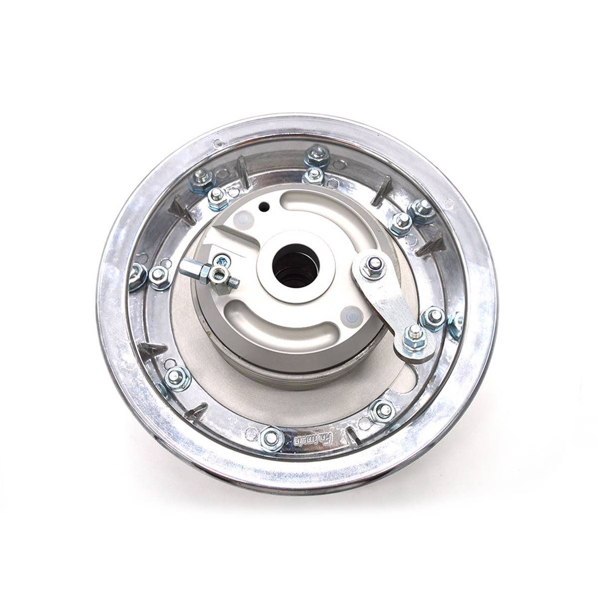 Demountable aluminum wheel rim with a 105 mm diameter DX drum brake (lever on the right) and a 70 mm hub made by alloying aluminum. Rolling fit for a 25 mm axis.