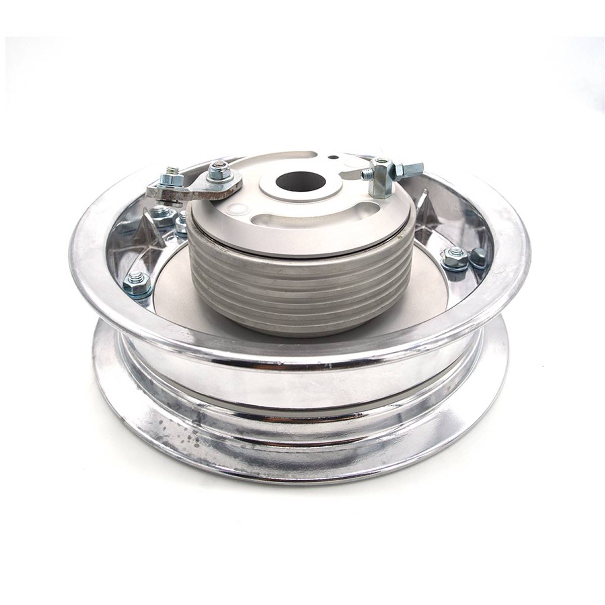 Demountable aluminum wheel rim with a 105 mm diameter SX drum brake (lever on the left) and a 70 mm hub made by alloying aluminum. Rolling fit for a 25 mm axis.