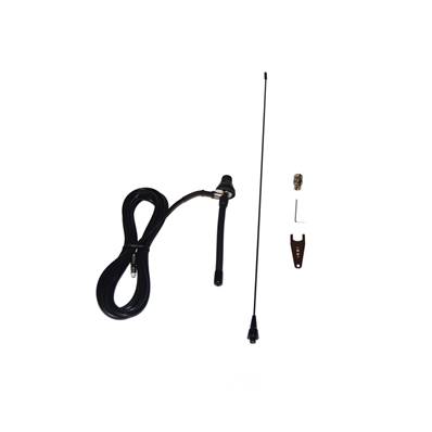 CI-122 VHF – COM antenna. Especially conceived to be mounted under the aircraft. The 45° curved whip configuration makes it perfect for helicopters and low-wings devices. Height: 223 mm. Length: 605 mm – Weight: 0,230 gr