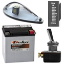 In the electricity category, you will find batteries, alternators and regulators, contactors and switches, lights and strobes, relays and capacitors, fuses and terminals. As well as cylinders and trims.