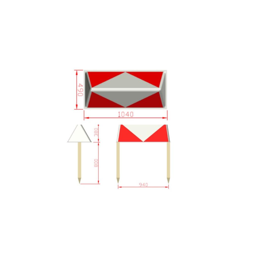 Those dihedral markers are dedicated to path and roads materialization on the airport (delivered with fixation pickets). They have been studied not to damage the device in case of shock. Using: path extremities delimitations. Those dihedral markers present many advantages: - robustness and resistance to shocks – Coloring and U.V stabilized material – 100% recyclable – Standard color: red and white – Weight: 6 kg with fixation support – Frangible