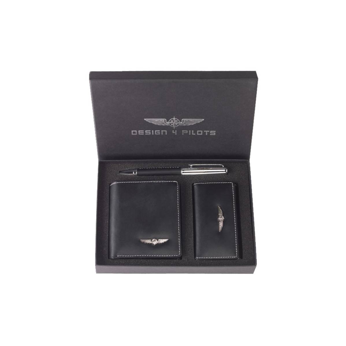 Elegant box made with high quality ecologic leather. It includes: - A high quality pen – A keychain case – A wallet with two sockets for tickets, a pouch for tiny changes, six pouches for credit cards and a lost one for I.D.