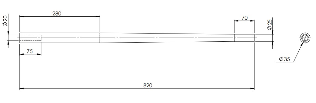 Conical gear leg made with Zicral 7075 T6 allowing a good damping (gain of weight). The starting diameter is 35 mm and width is 280 mm, the iconic part is 480 mm and becomes from 25 to 70 mm diameter. Full length 820 mm. Weight: 1,370 kg per leg. Sold as a pair.