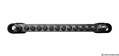 This ground fixing strip allows you to cleanly centralize your electrical connections. Equiped with 12 round Ø6,35mm plugs, it offers a simple and efficient connection of your different equipment. Its robust construction allows it to support up to 100A. Width : 178mm, height : 18mm.