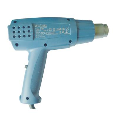Presentation : This entry-level thermal stripper model with two heating settings and air rate fits for every standard application to hot air. This entry-level device is a strong and experienced tool into practicing every work needed without a reduction nozzle. Besides the obligatory thermal fuse, a resettable thermostat provides an efficient protection against overheating. Main characteristics: * the temperature and the air rate can be settled thanks to a switch: 240 l/min, 300°C; 450 l/min, 500°C * Double protection against overheating: thermostat and thermal fuse * Rubber cable high resistance * To function manually or on a fixed point. Technic specification: *Size: 240 x 89 x 200 mm * Power: 1600 W * Tension: 230 – 240 V, 50 Hz * Air rate position 1: 240 L/min *Air rate position 2: 500L/min *Temperature position 1: 300°C *Temperature position 2: 500°C *Temperature setting: two-stage *Weight: 700 gr