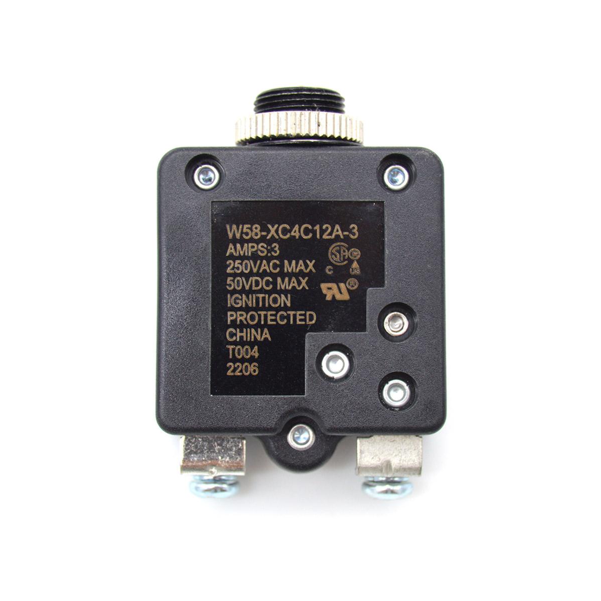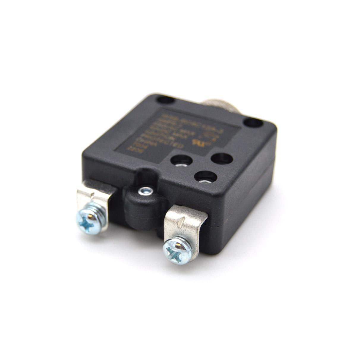 Unipolar cut-off switch 12V 3A, compact with positive free priming. The priming is performed by a bi-metallic element, insensitive to short-term start-up tip. Attachment can be fixed with thread nose or ratchet. Fixed on the dashboard with a union-nut L x l x h = 45 mm x 16 mm x 36 mm