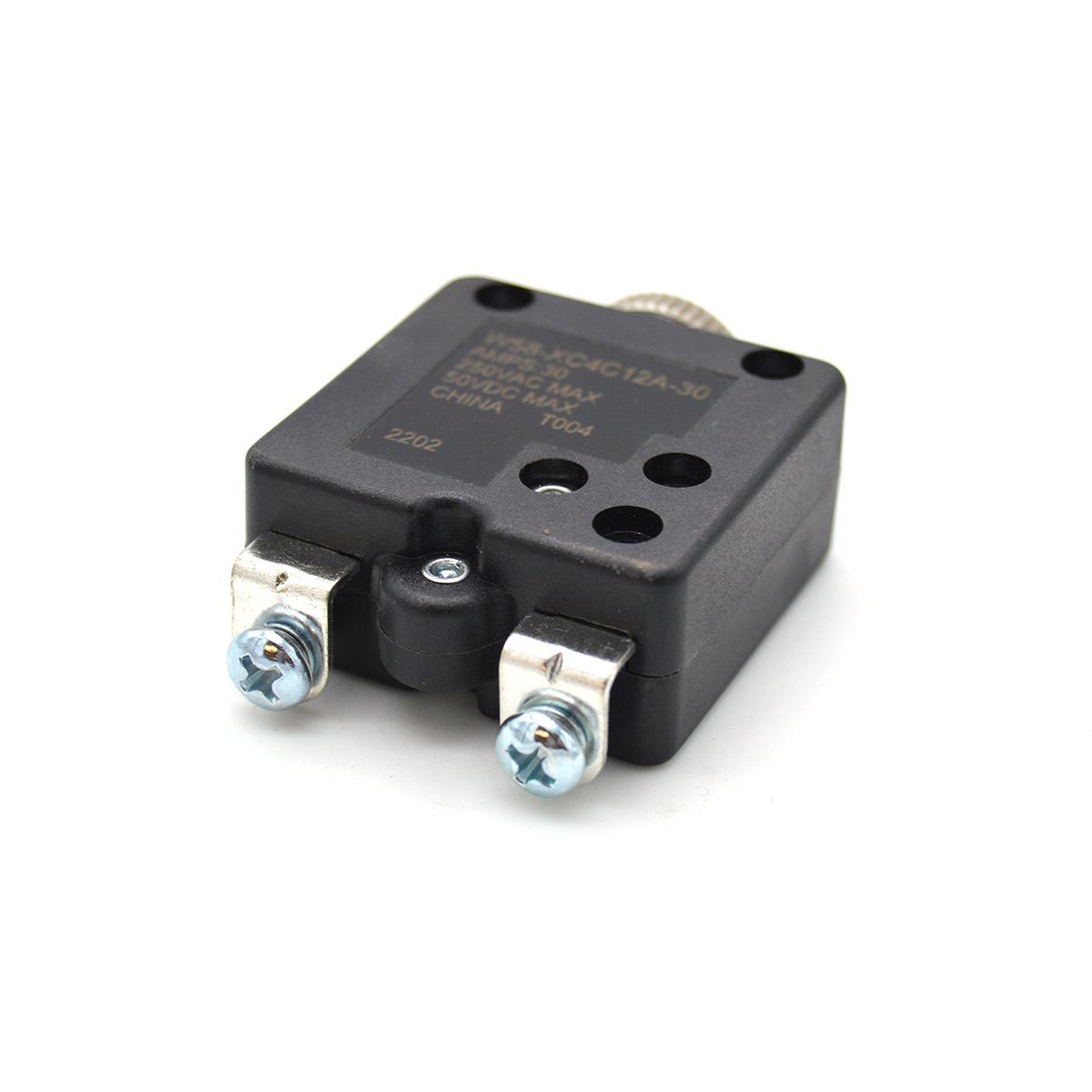 Unipolar cut-off switch 12V 30A, compact with positive free priming. The priming is performed by a bi-metallic element, insensitive to short-term start-up tip. Attachment can be fixed with thread nose or ratchet. Fixed on the dashboard with a union-nut L x l x h = 45 mm x 16 mm x 36 mm