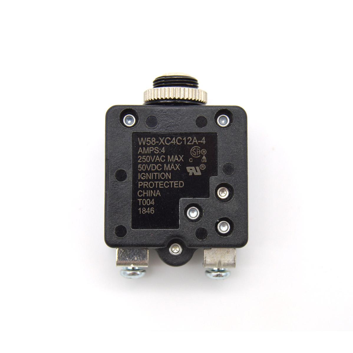 Unipolar cut-off switch 12V 4A, compact with positive free priming. The priming is performed by a bi-metallic element, insensitive to short-term start-up tip. Attachment can be fixed with thread nose or ratchet. Fixed on the dashboard with a union-nut L x l x h = 45 mm x 16 mm x 36 mm