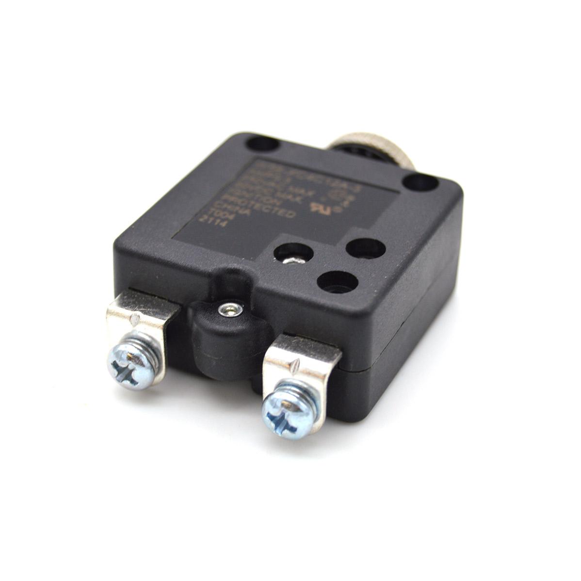 Unipolar cut-off switch 12V 5A, compact with positive free priming. The priming is performed by a bi-metallic element, insensitive to short-term start-up tip. Attachment can be fixed with thread nose or ratchet. Fixed on the dashboard with a union-nut L x l x h = 45 mm x 16 mm x 36 mm