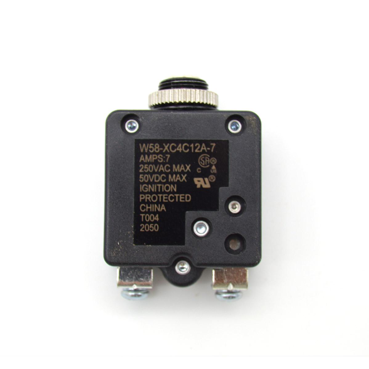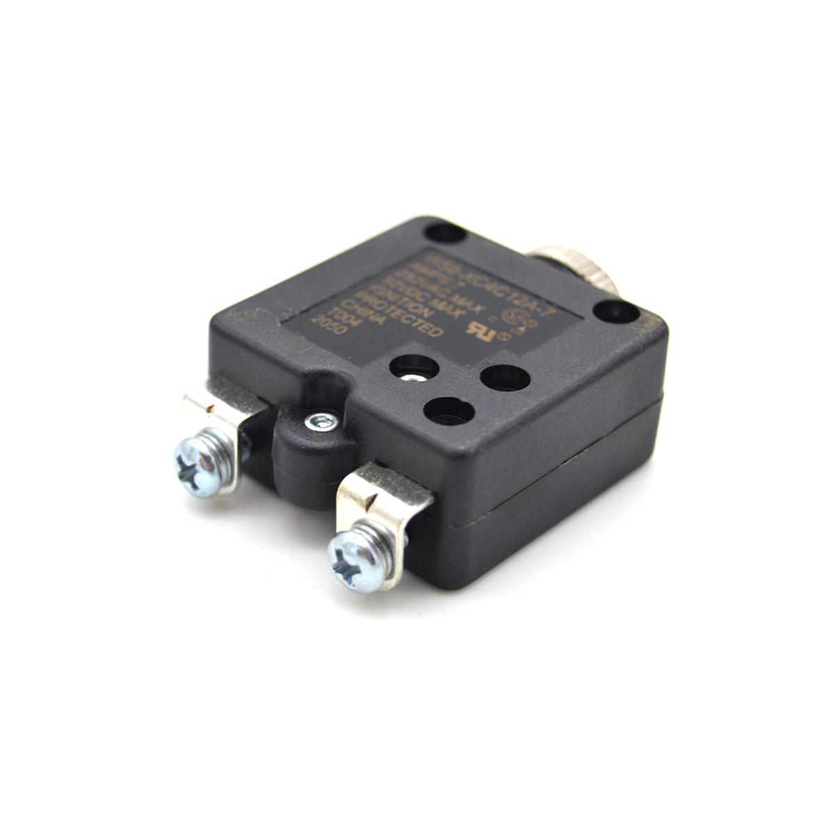 Unipolar cut-off switch 12V 7A, compact with positive free priming. The priming is performed by a bi-metallic element, insensitive to short-term start-up tip. Attachment can be fixed with thread nose or ratchet. Fixed on the dashboard with a union-nut L x l x h = 45 mm x 16 mm x 36 mm