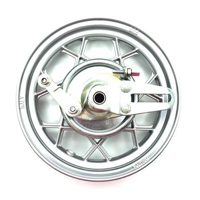 Aluminum wheel rim 4’ with a drum brake (diam 90 mm) and 84 mm hub, made by alloying aluminum...