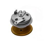 Demountable aluminum wheel rim with a 105 mm diameter DX drum brake (lever on the right) and a 70 mm hub made by alloying aluminum. Rolling fit for a 25 mm axis.