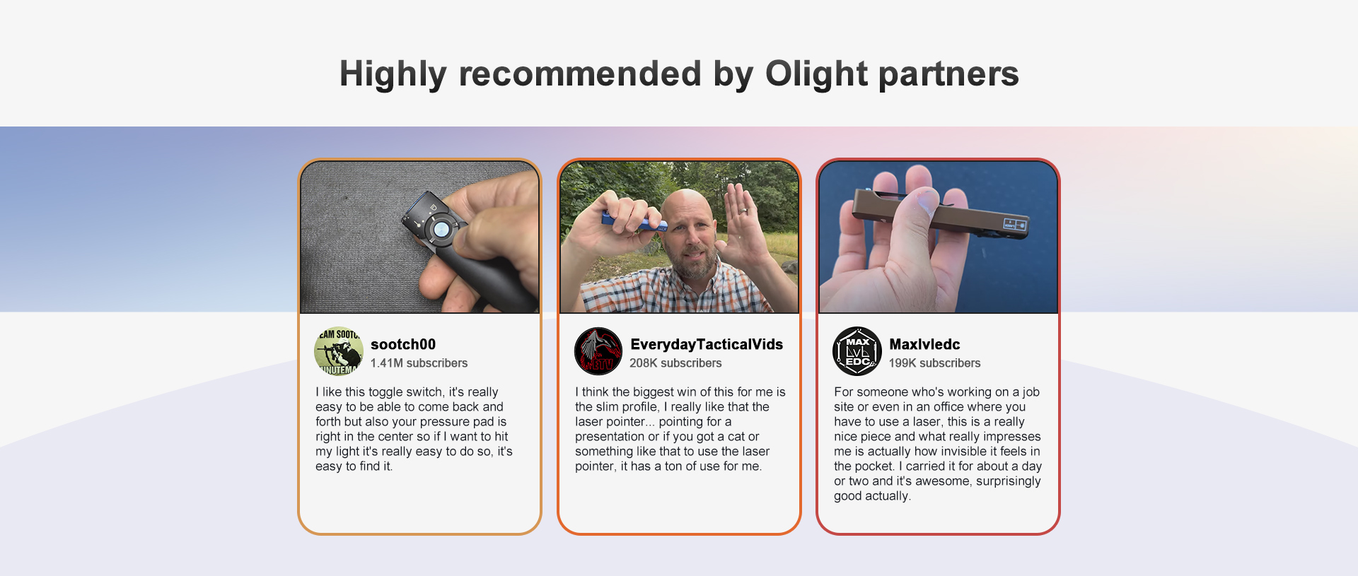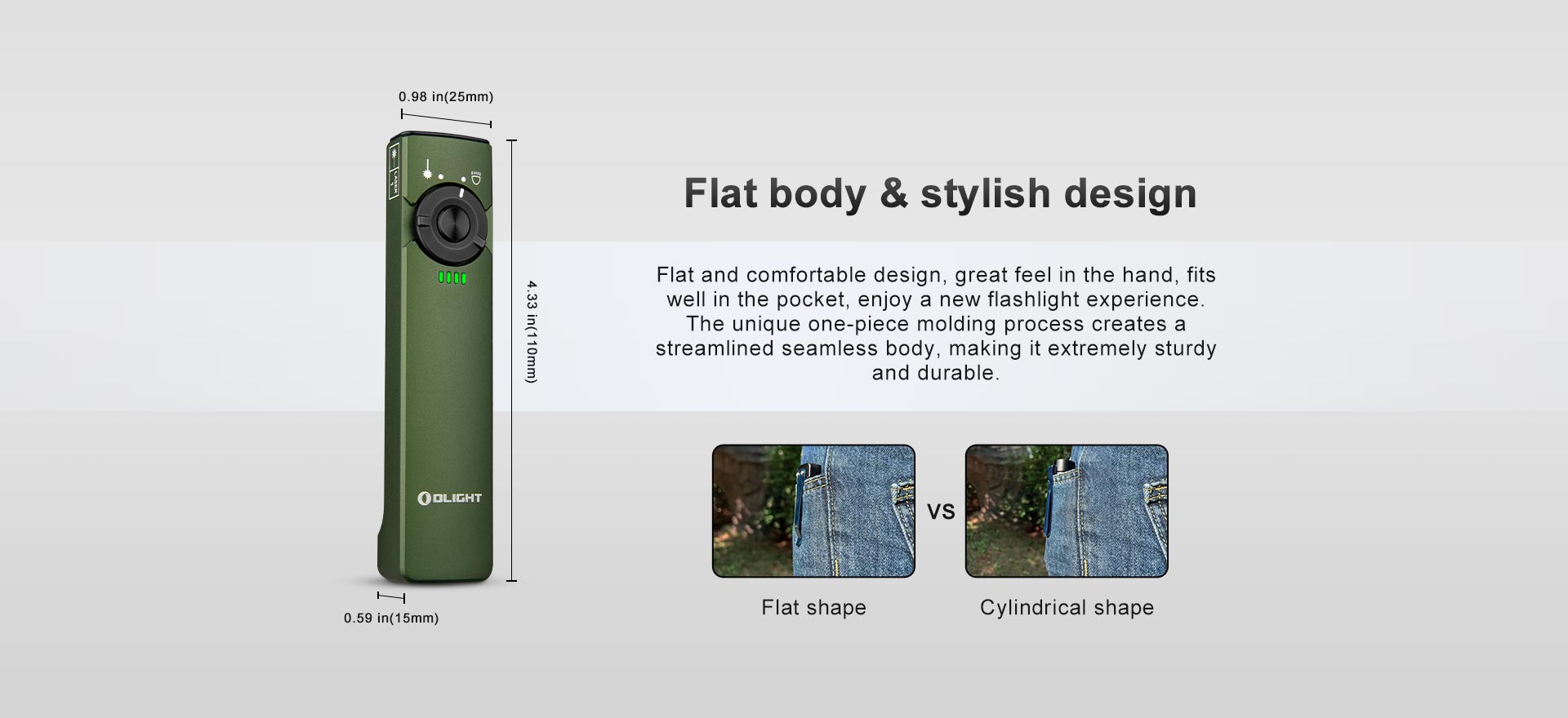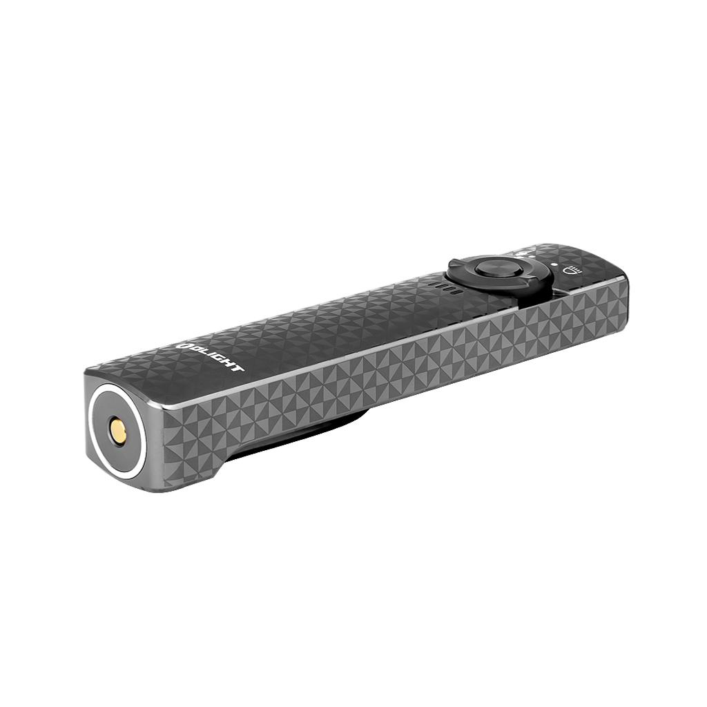 The Olight Arkfeld is Olight's first portable EDC flashlight that features a dual light source and an exceptionally practical design. Compact and lightweight (87g, 15mm thick), it easily attaches to your clothing with its built-in clip, making it perfect for everyday use.