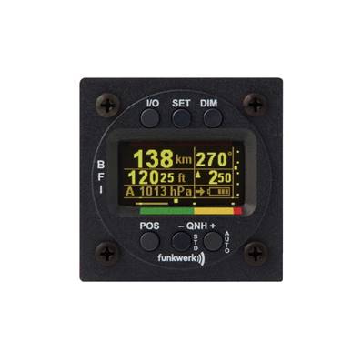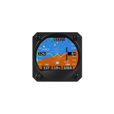 The tiny EFIS BFI57 displays the most important flight data. Conceived for an ultralight application, it includes pressure sensors in order to determinate altitude, speed and rise / raid rate and a GPS integrated receiver which allows the ground trajectory determination, as well as its actual situation and the ground speed. The BFI57 may be used as a minimum flight instrument or like a back-up device, when combined with classics or cockpit’s instrument. In case of loss of power or main instruments malfunction, this device helps you to keep flying. The integrated battery assures a 3h independent functioning. Both air and rise / raid speed are displayed with alphanumerical form and bar graphs. The air speed indicator presents the required color marks (this can be set). Every display options can easily be adapted to the pilot’s preference, according to the type of airplane. QNH can be manually settled or automatically use the GPS if the official information is not available. Every display data are planned for a serial interface. With magnetic compass, it represents a complete instrumentalization of the complete base. Built-in diam 57 mm – Dimensions 65 x 65 x 110 mm – Weight 500g – Supply system 12V – Anemometer – Km or nots display: 0-400 km/h or 0-200KT – Altimeter – Meter or feet display: 300-10000 M or 1000-30000 ft – Variometer – m/s or ft/min display