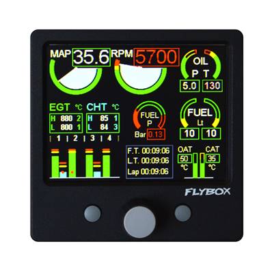 The Flybox My-EMS Base is an instrument grouping together different engine information in a standard 80 mm diameter format.