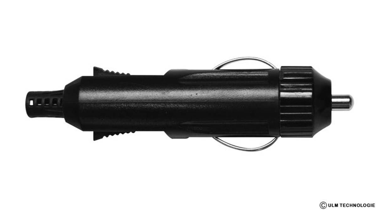 Plastic male plug black, functioning with female hold, cigar lighter and dashboard female hold