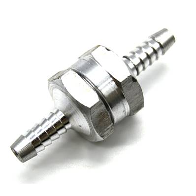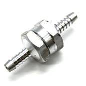 Non-return valve, diam 6 mm, made with aluminum, avoid defusing the fuel circuit. In case of two wing tanks, the non-return avoids that one bleeds out in the other. Weight: 30 gr