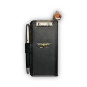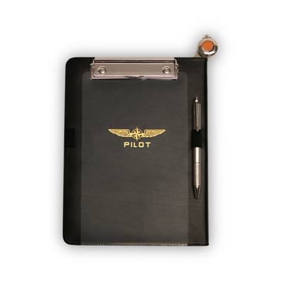 This elegant and high quality flight board has been conceived in leather (environmentally friendly). With wide fixation Velcro strips, a fixation clamps, two elastic pen holders and anti-sliding bars will give you an optimum seat. On the back there is a place for a pen. This flight board is really adapted for students. Non included pens.