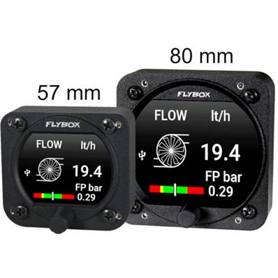 FC-10 econometer is compatible with carburetor or injections mono-motor and bi-motor devices (for the version with 2 sensors). The sensor allows a measure for rates from 2.3 to 265 liters per hour with a 100 psi (nearly 7 bars) high pressure. It includes a NMEA output (3 wires) to plug the GPS, which allow to calculate the needed fuel and the flight time to reach the next checkpoint, the distance to travel again… Possibility to select units displayed between gallons and liters then nautical miles, miles and kilometers. Orange backlit screen with light intensity automatic setting. 57 mm diameter device which functions with 12 – 28 V. Whole weight: 400 gr. The screen successively displays (Mode button) – The rate – Used fuel quantity – Available fuel quantity – Distance of flight time remaining – Fuel quantity needed until the next checkpoint (GPS) – Average fuel consumption. For motor which include a fuel feedback (ex: Rotax 912), the device accuracy can be increased by installing a second sensor. Sold with 2 sensors