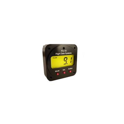 FC-10 econometer is compatible with carburetor or injections mono-motor and bi-motor devices (for the version with 2 sensors). The sensor allows a measure for rates from 2.3 to 265 liters per hour with a 100 psi (nearly 7 bars) high pressure. It includes a NMEA output (3 wires) to plug the GPS, which allow to calculate the needed fuel and the flight time to reach the next checkpoint, the distance to travel again… Possibility to select units displayed between gallons and liters then nautical miles, miles and kilometers. Orange backlit screen with light intensity automatic setting. 57 mm diameter device which functions with 12 – 28 V. Whole weight: 400 gr. The screen successively displays (Mode button) – The rate – Used fuel quantity – Available fuel quantity – Distance of flight time remaining – Fuel quantity needed until the next checkpoint (GPS) – Average fuel consumption. For motor which include a fuel feedback (ex: Rotax 912), the device accuracy can be increased by installing a second sensor. Sold with a sensor