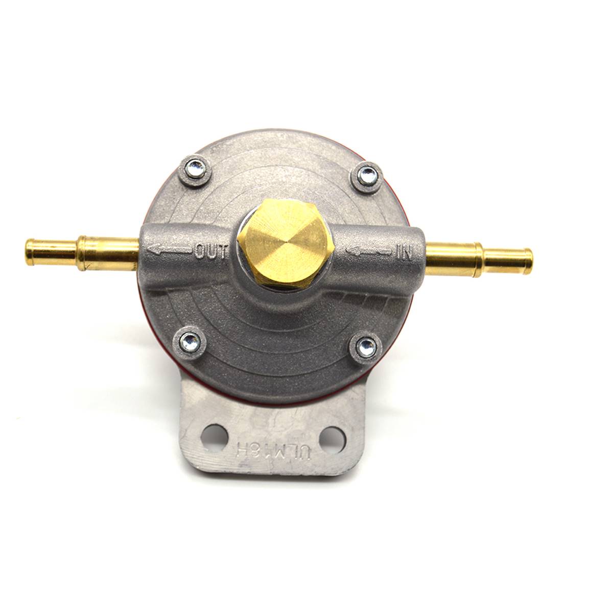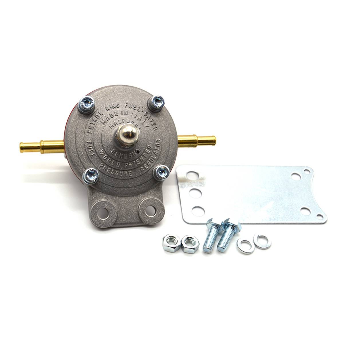 Fuel pressure regulator for carburetor motor with 6 and 8 mm male output for interior 6 or 8 mm fuel pipe.