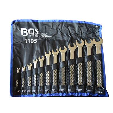 Set of 12 US spanners, available sizes from 1/4' to 15/16'. Those tools are manufactured from chrome vanadium steel, hardened steel and polished jaws. The kit is sold in its pouch.