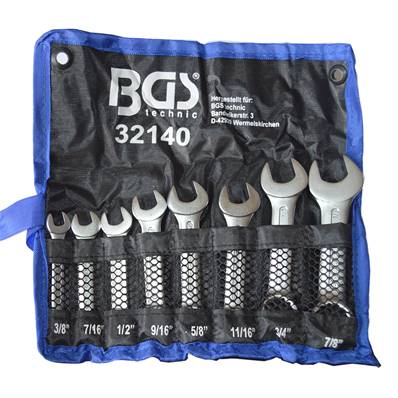 Set of 8 US spanners, available sizes from 3/8 'to 7/8'. Those tools are manufactured from chrome vanadium steel, hardened steel and polished jaws. The kit is sold in its pouch.