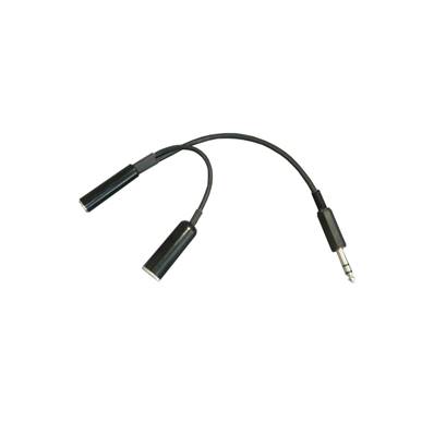 Adapter allowing plugging an aviation helmet double jack to a PRO2 monojack set. (2 female plugs 5.2 to a male plug 6.3 mm)
