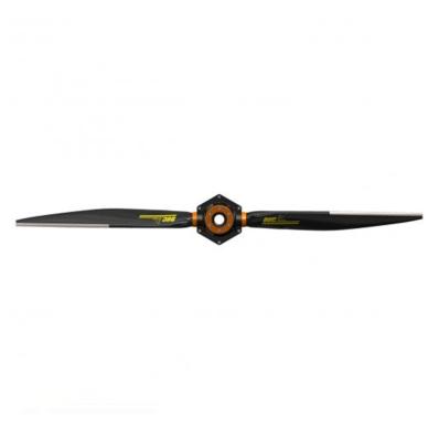 Two-bladed DUC Inconel Flash propeller (right). New innovating design for a strong extension while cruising (new definition of the kinking axis and the center of pressure). Strong “constant speed” effect and high performance. Low consumption and sound nuisance reduction. Blades and hubs made with composite, look like carbon. The FLASH blades and hub are built according to the DUC technology, from unidirectional carbon fibers pre impregnated with epoxy resin. Low weight and inertia. High accuracy manufacturing. Hub equipped with metal inserts. Diam: 1625 to 1854 mm (64” to 73”) Weight: 4,4 kg. Leading edge reinforced with Inconel. Application: light plane with tractive configuration. Engine from 100 to 180 CV: Rotax, Jabiru, VW, Continental, Lycoming… Be careful: precise the engine and the model of the aircraft while ordering.