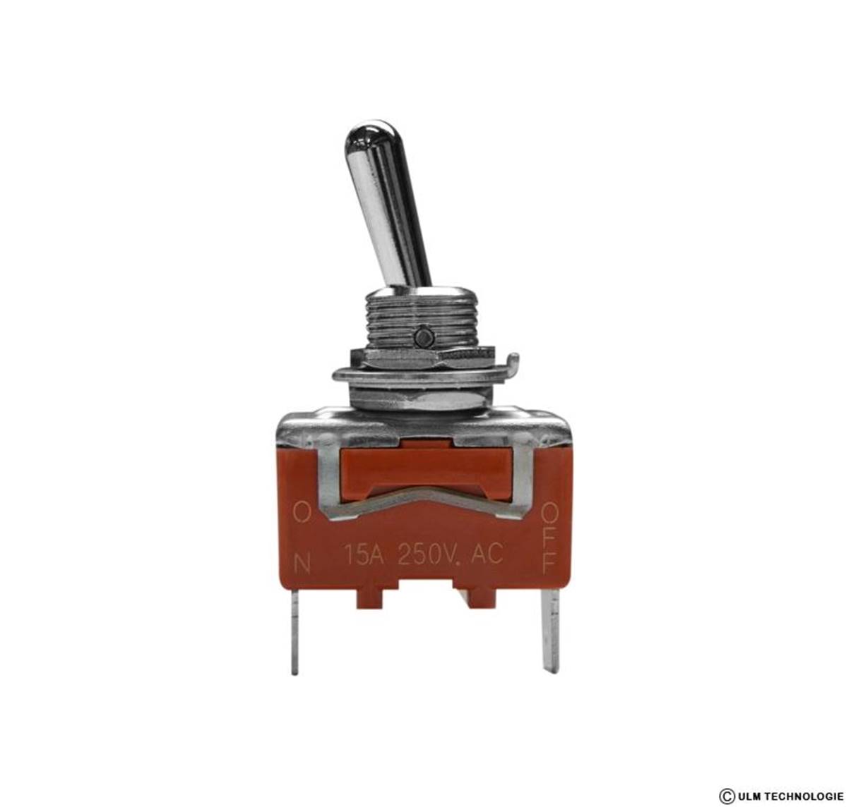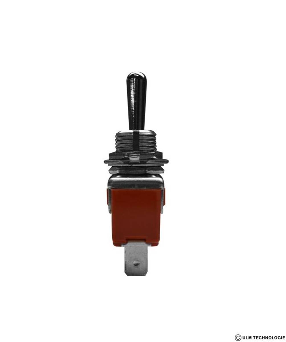 Switch 12 V – 15 A. This lever switch, unipolar, can be connected by 6.3 mm flat pods. It allows you to make a waterproof settlement by cap – Support drilling: 12.5 mm.