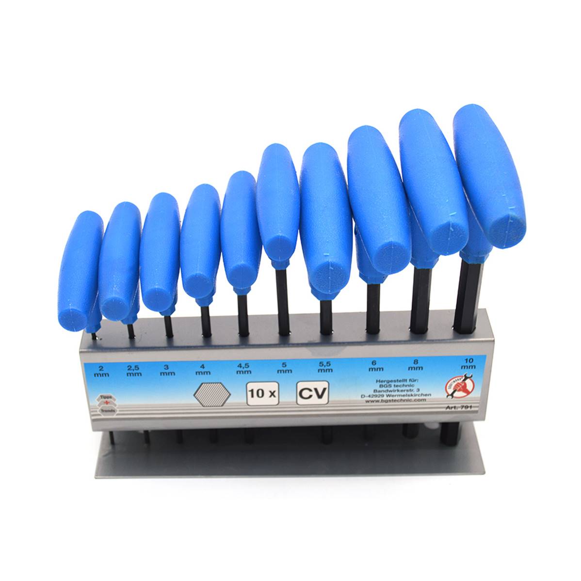 T-handle hex 10 keys set 2 - 10 mm (3/32' - 7/64' - 1/8' - 6/64' - 5/32' - 3/16' - 7/32' - 1/4' - 5/16' - 3/8')