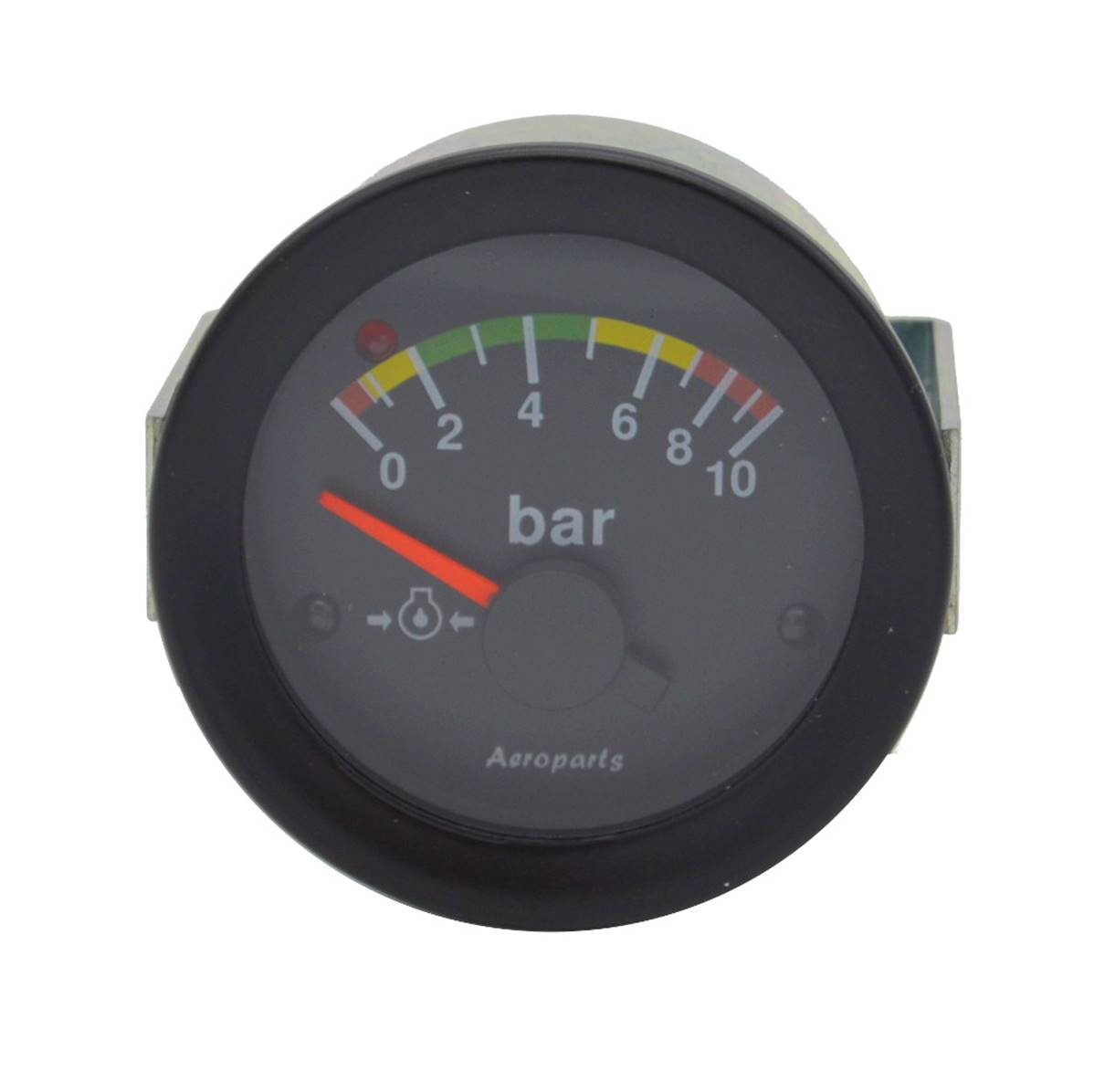 Oil pressure 10 bars from 4 to 20 mA with low pressure alarm (1.5 bar) for Honewell sensor and new 912. Diam 52 mm – The needle motion is damped by silicon oil.