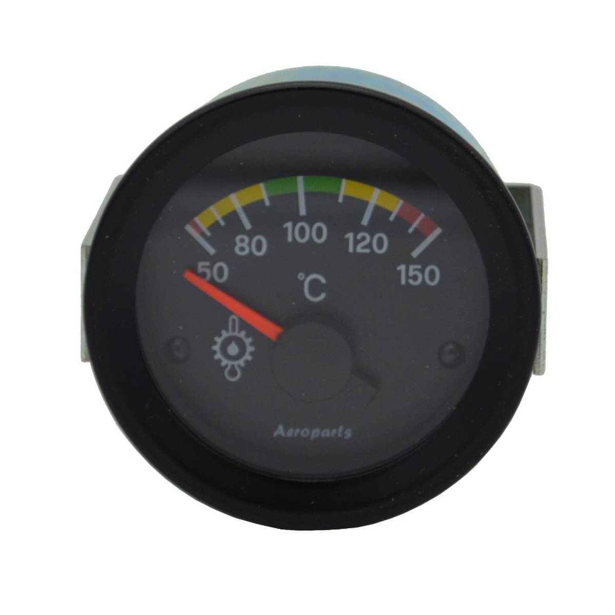 Oil temperature indicator (150°C) – Diam 52 mm – Total depth (with exceeding screws): 55 mm – Weight: 140 g – The needle motion is damped by silicon oil.