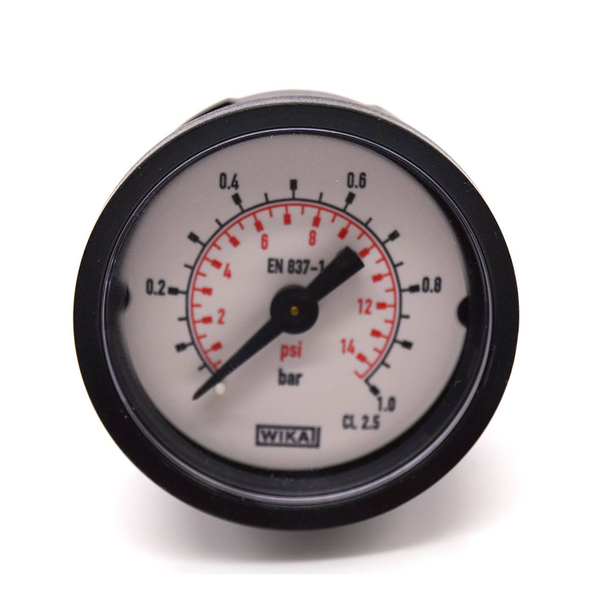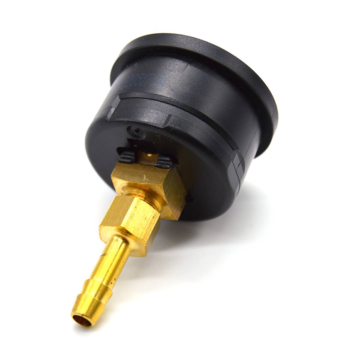 Manometer – 0 – 1 bar – 2nd scale PSI G1/8B. Black plastic box, 1/8 pressure type input arranged on the back of the device. Delivered with a 6 mm tip. Weight: 75 gr.