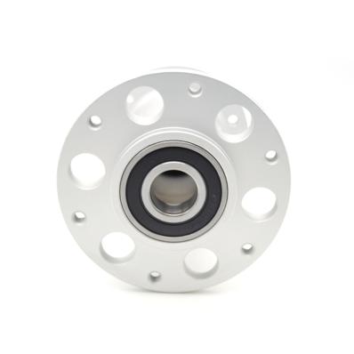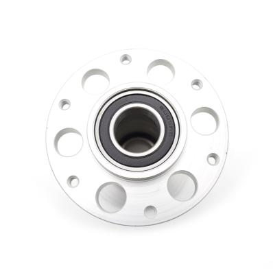 Anodized aluminum 2017T4 brakeless, for brakeless wheels, adapted to Aéroparts wheel rims. For 55mm interior wheel rim, 47 mm fitting. This hub is perfect for 17, 20 and 25 mm rolling system.