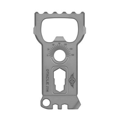The OKNIFE Otacle J1M, made of durable and lightweight titanium, combines 6 practical functions: bottle opener, hex wrench, spoke wrench, protractor, screwdriver, and lanyard hole.