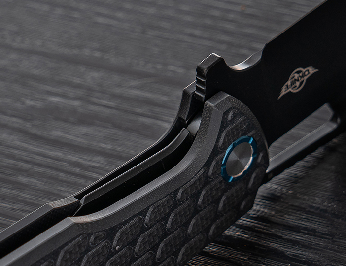 The design is elevated by a round pivot with a blue PVD-coated contour, a signature Olight detail that gives the knife a unique and stylish touch for your collection.
