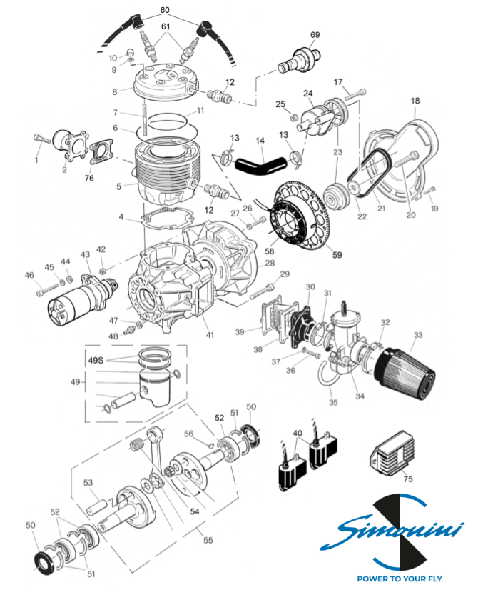 Cable for spark plug Spark plug Set screws for water Set nuts for cylinder Cylinder head Cylinder head Kit screws for cilinder head gaskets (small) head gaskets (large) Double pulley for water pump Water pump Water rubber manifold cranckase cover ignition Belt for water pump Crown gear for starter Complete ignition Set screws for water Cilinder Eccentric pinion Exhaust manifold Kit engine screws Cylinder gasket Cranck-case for ignition Central crank-case Vacum operated screw Electric starter Air filter Victor 1 and 2 diameter Reed valve Reed valve Régulator Ducati for Victor 1 Central crank-case Complete set of seals Crankcase seeger Set engine bearings Set engine bearings Complete cranck-shaft Complete cranck-shaft Set engine bearings Complete set of seals Complete piston Two rings