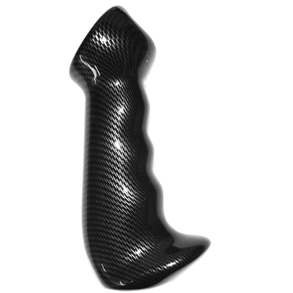 Carbon color grip handle for 24.5 diam tube. It is 150mm long and platinum for buttons measures 42mm diam, including 36mm usable.