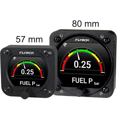 The instrument is customizable to read the pressure from Engines ECU CAN bus or directly from Flybox optional probe.