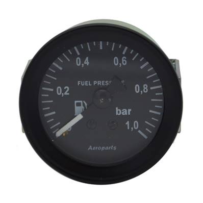 Mechanic fuel pressure manometer (0-1 bar / 0-15 PSI) – Diam 52 mm – The needle motion is damped by the silicon oil.